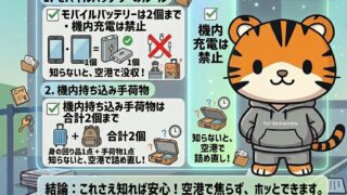 2026年4月24日から変わる飛行機のモバイルバッテリー新ルールと、機内持ち込み手荷物・お土産の個数管理をわかりやすく解説。GW前に必ず確認したい注意点をまとめました。